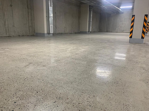 Пол с глубокой механической шлифовкой и пропиткой литиевым упрочнителем. Обеспечивает высокую износостойкость, снижение пылеобразования, долговечность и лёгкость в обслуживании. Поверхность становится гладкой и полуматовой с возможным лёгким блеском — не скользкая и без наливных слоёв.