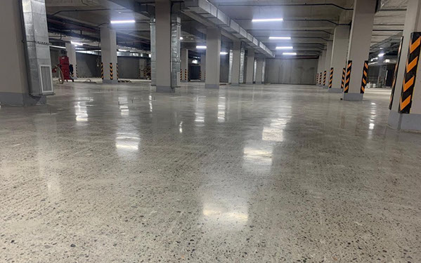 Пол с глубокой механической шлифовкой и пропиткой литиевым упрочнителем. Обеспечивает высокую износостойкость, снижение пылеобразования, долговечность и лёгкость в обслуживании. Поверхность становится гладкой и полуматовой с возможным лёгким блеском — не скользкая и без наливных слоёв.